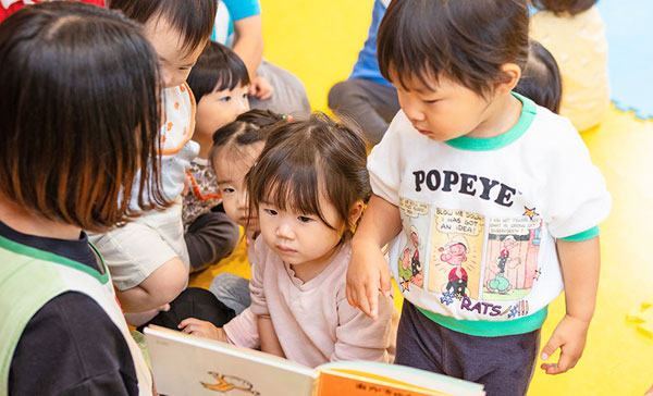 登園が終わると絵本やお絵描き、音楽活動などクラスごとの設定保育が始まります。