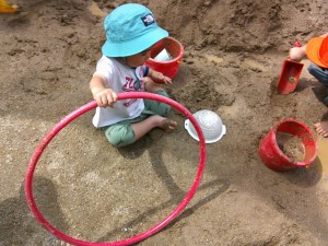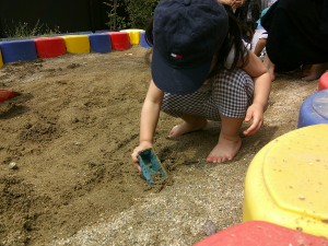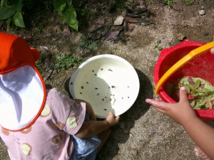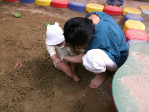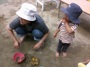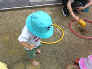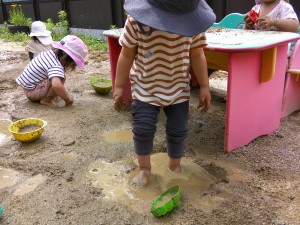 園庭では1.2歳児さんがどろんこ遊びをしていたので一緒に遊びました。