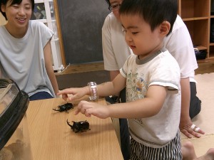 お部屋にもどって、かぶとむしやくわがたを観察して、絵本を読んで、お帰りのお歌をうたっておひらきとなりました。