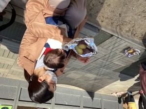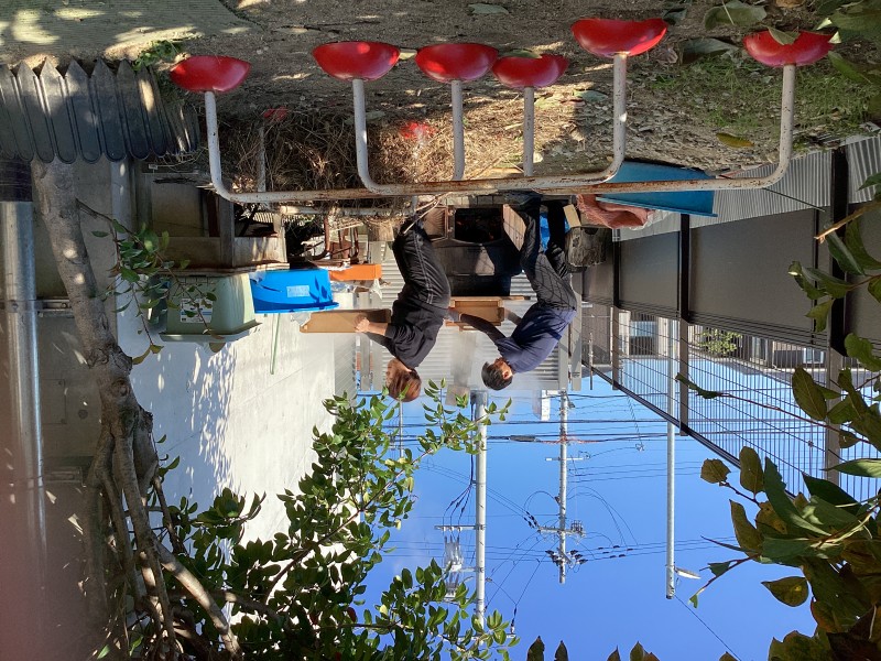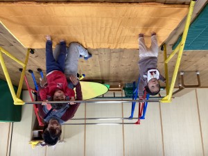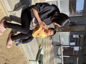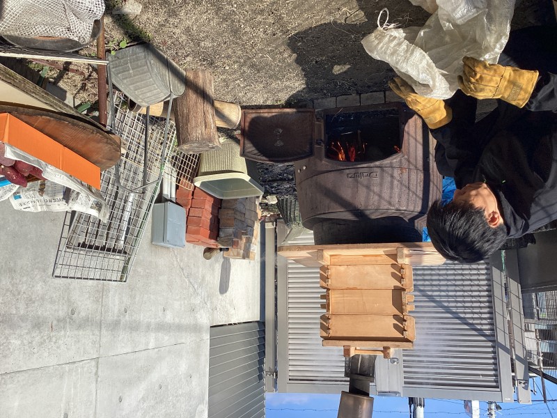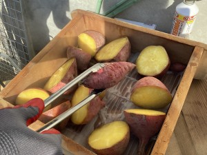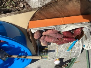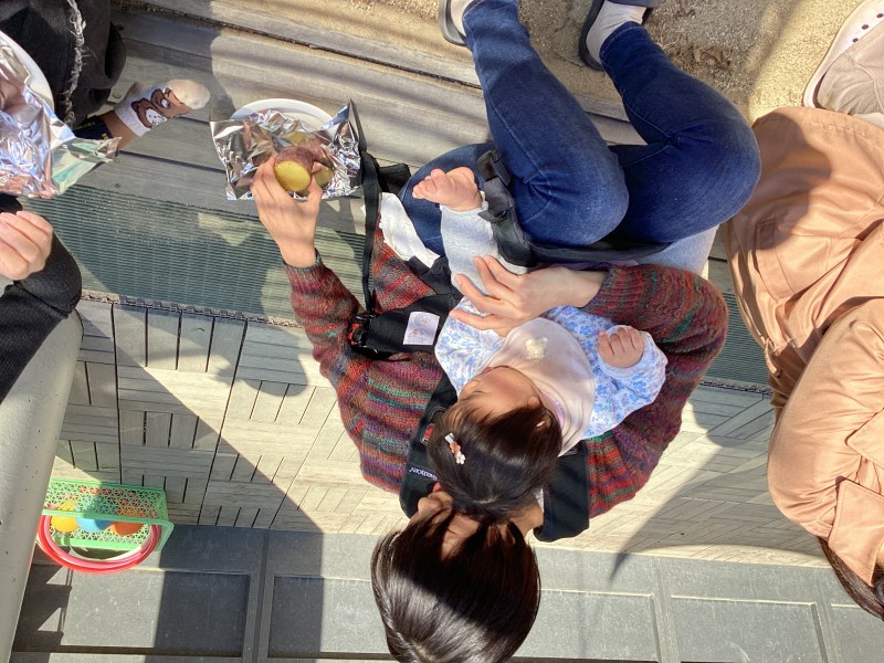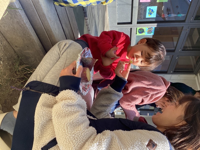 ぐっと冷え込んだ朝でしたが、お日様が暖かく園庭はポカポカ、お芋日和でした。