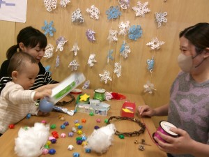 遊んだ後はクリスマスリース作り。色んなアイデアを出しながら可愛いツリーが出来ていました。