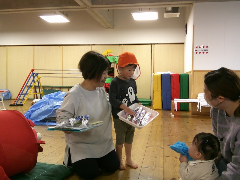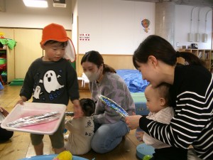 途中、2歳児さんが「さんま焼けました~」とサンマを配ってくれました。