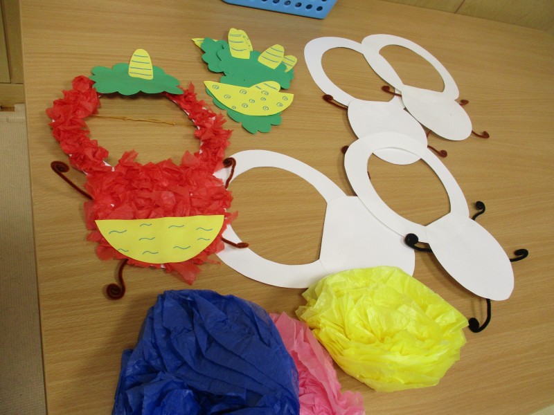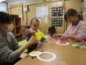 お部屋では、鬼のお面作り。好きな色の鬼を作り、とっても可愛い小鬼に変身どうぞ写真をご覧下さいね。