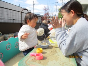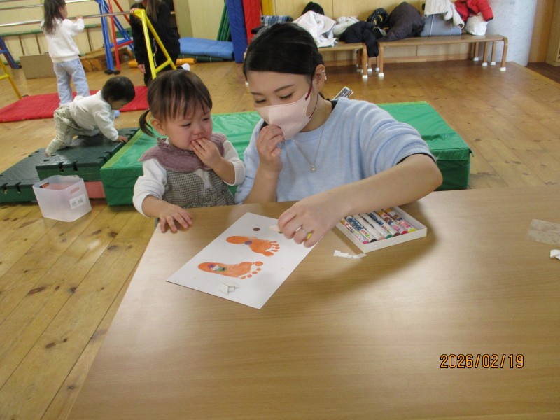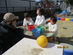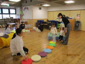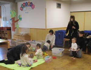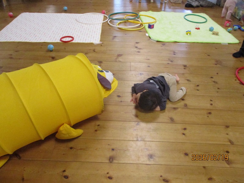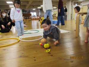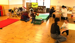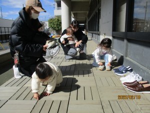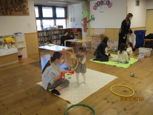 本日は園庭開放を開催しました。るんびに広場さんからも参加して頂き10組の親子さんが参加してくださいました。今日は風が冷たかったので2歳児さんは園庭で、そのほかのお子さんはホールで遊びました。