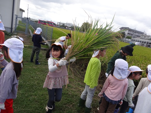 5歳児 稲刈り 6月に植えた稲の苗が大きく育ったので