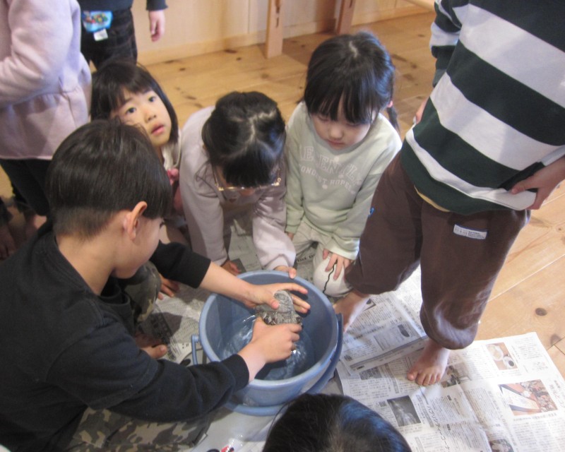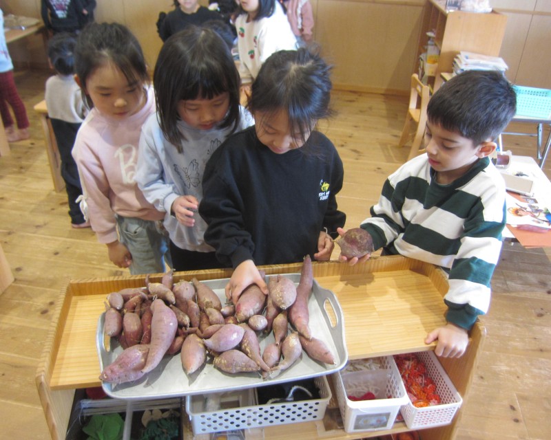と、3、4歳がしっかり芋を包み、