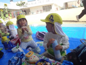しおさいこども園の友だちに挨拶したり、