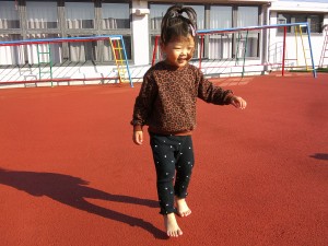 2階園庭を広々と使い、ボール遊び、鉄棒、平均台、マット遊びなどのびのびあそびました。