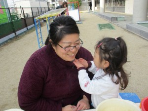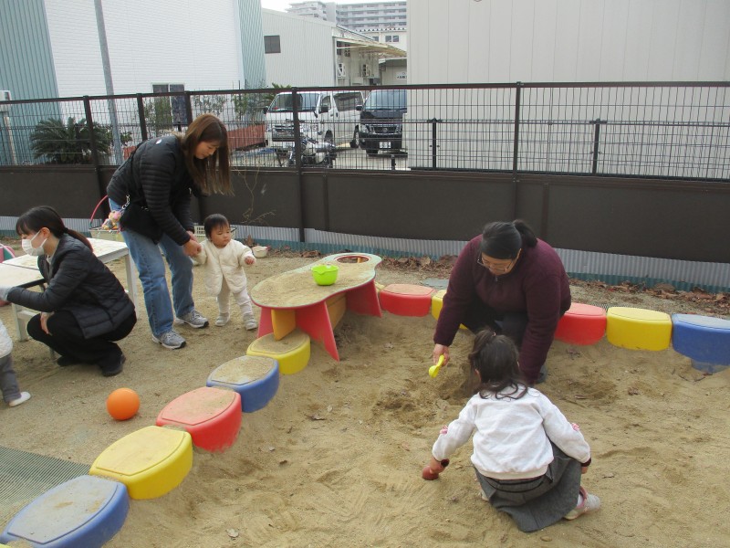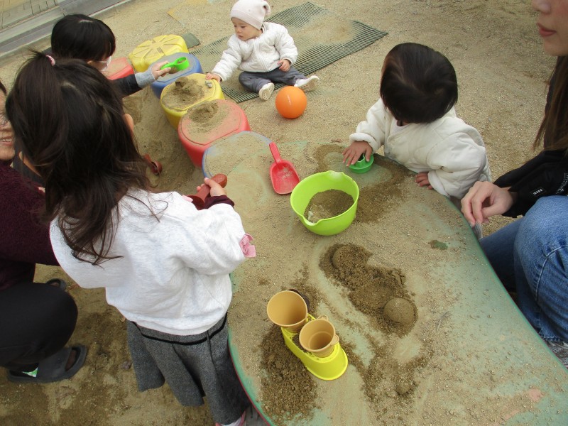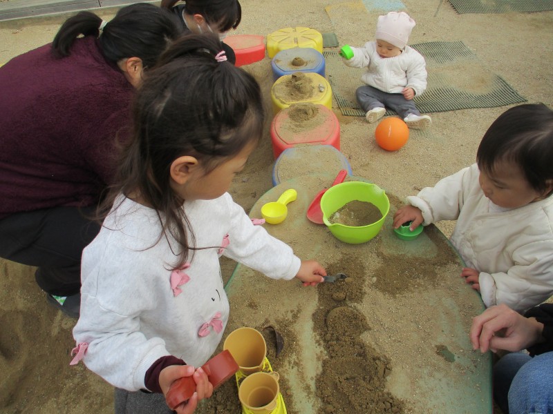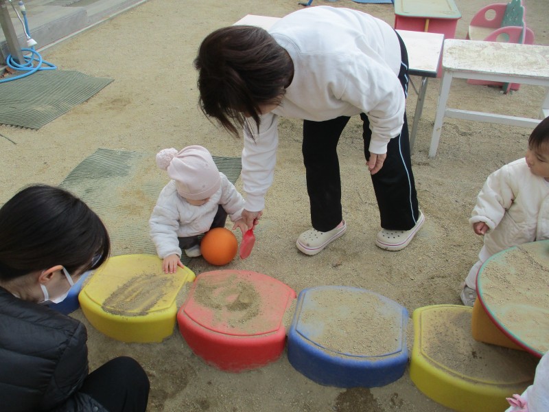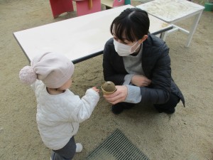 風は冷たいですがお日様がぽかぽかの朝だったので、みんなで元気に園庭で遊びました。