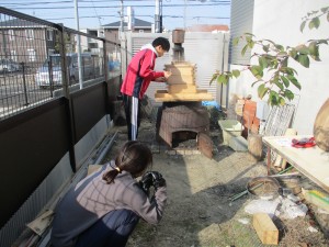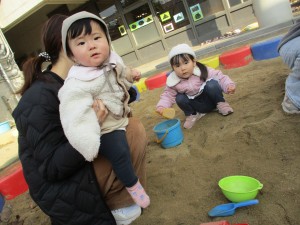 園庭は朝からおもちつきの準備の為、かまどから薪が燃えるいい香りに包まれ、春のようなポカポカ陽気で幸せな雰囲気の中参加者の皆様をお迎えしました。