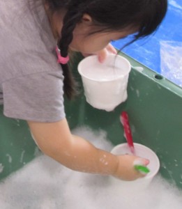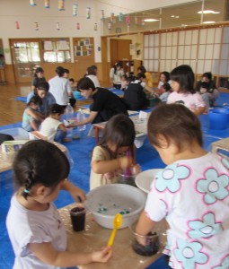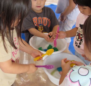 泡、寒天、色水の3つのコーナーを設けて、自分の好きな
