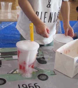 その中に泡や寒天をいれて「アイスだよ」と、想像力を