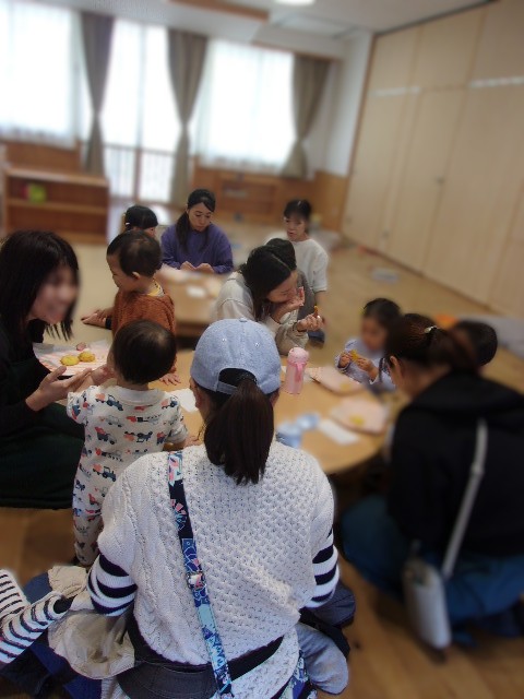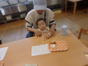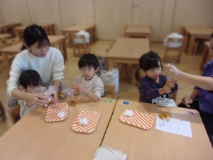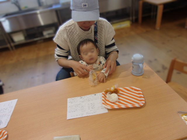 袋の中でこねた生地にかぼちゃあんをはさみ、みんな上手に作り美味しく食べました!!