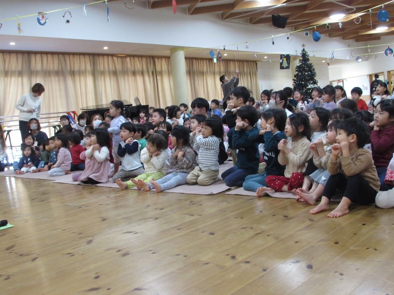 『グーチョキパ―(クリスマスVr.)』『サンタになっちゃった』の手遊びを楽しみました。