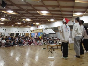 職員による合奏では「あわてんぼうのサンタクロース」の歌を合奏に合わせて歌い、大盛り上がりでした。